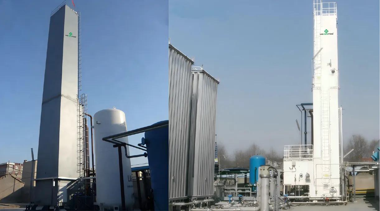 3. Ilman erottaminen: Tislauspylväässä nouseva kaasu ja alavirran neste lämmötään ja massansiirto levyllä tai pakkauksella; Kasvavan kaasun typpipitoisuus kasvaa, kun taas alavirran nesteen happipitoisuus kasvaa.