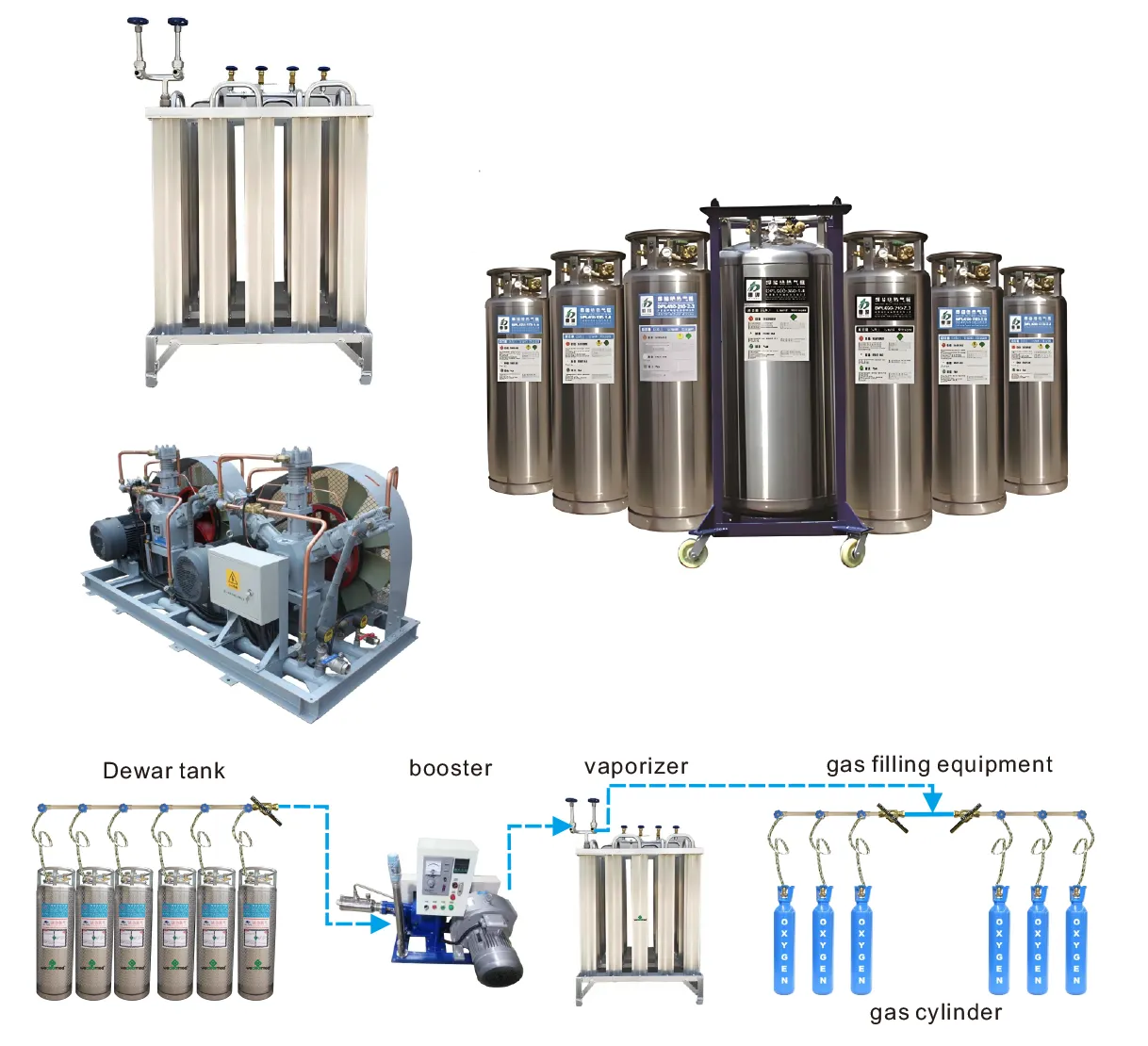 Lääketieteellistä nestemäistä happijärjestelmää käytetään matalan lämpötilan nesteiden tuotantoon, varastointiin ja kuljetukseen. Sitä käytetään laajasti lääketieteellisessä, teollisessa, maataloudessa, kansallisessa puolustuksessa ja tieteellisessä tutkimusteollisuudessa. Verrattuna perinteiseen teräskaasusylinteriin, sillä on edut kätevälle kuljetukselle, energiansäästölle, turvallisuudelle ja luotettavuudelle.